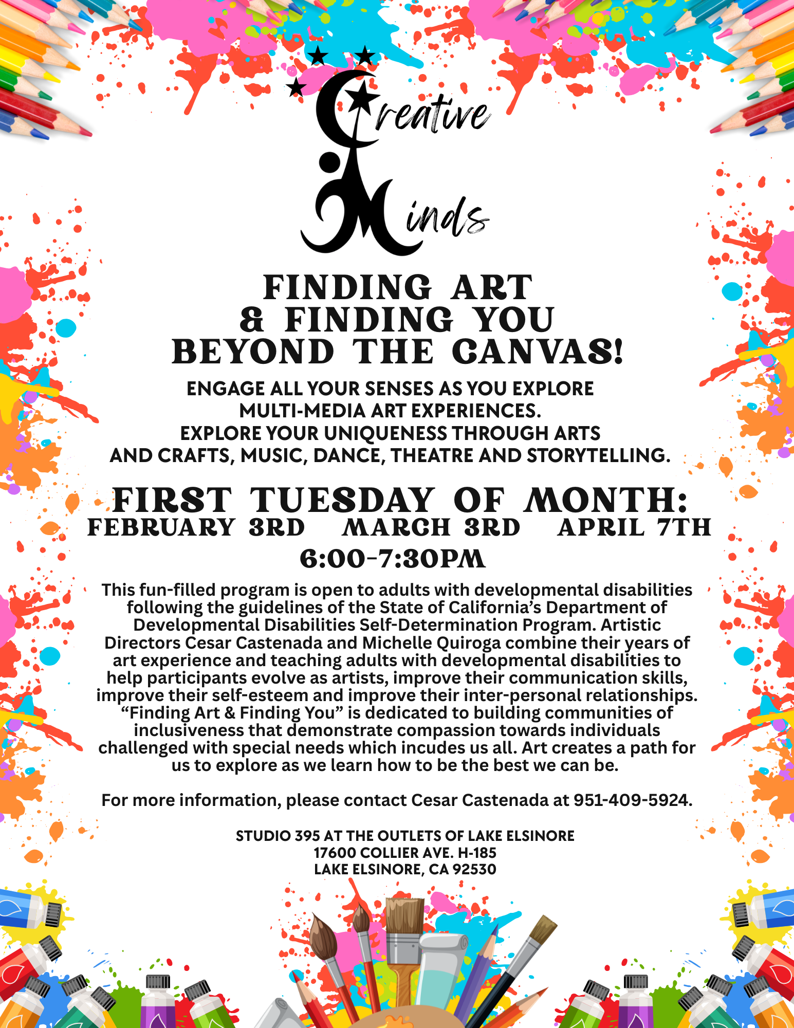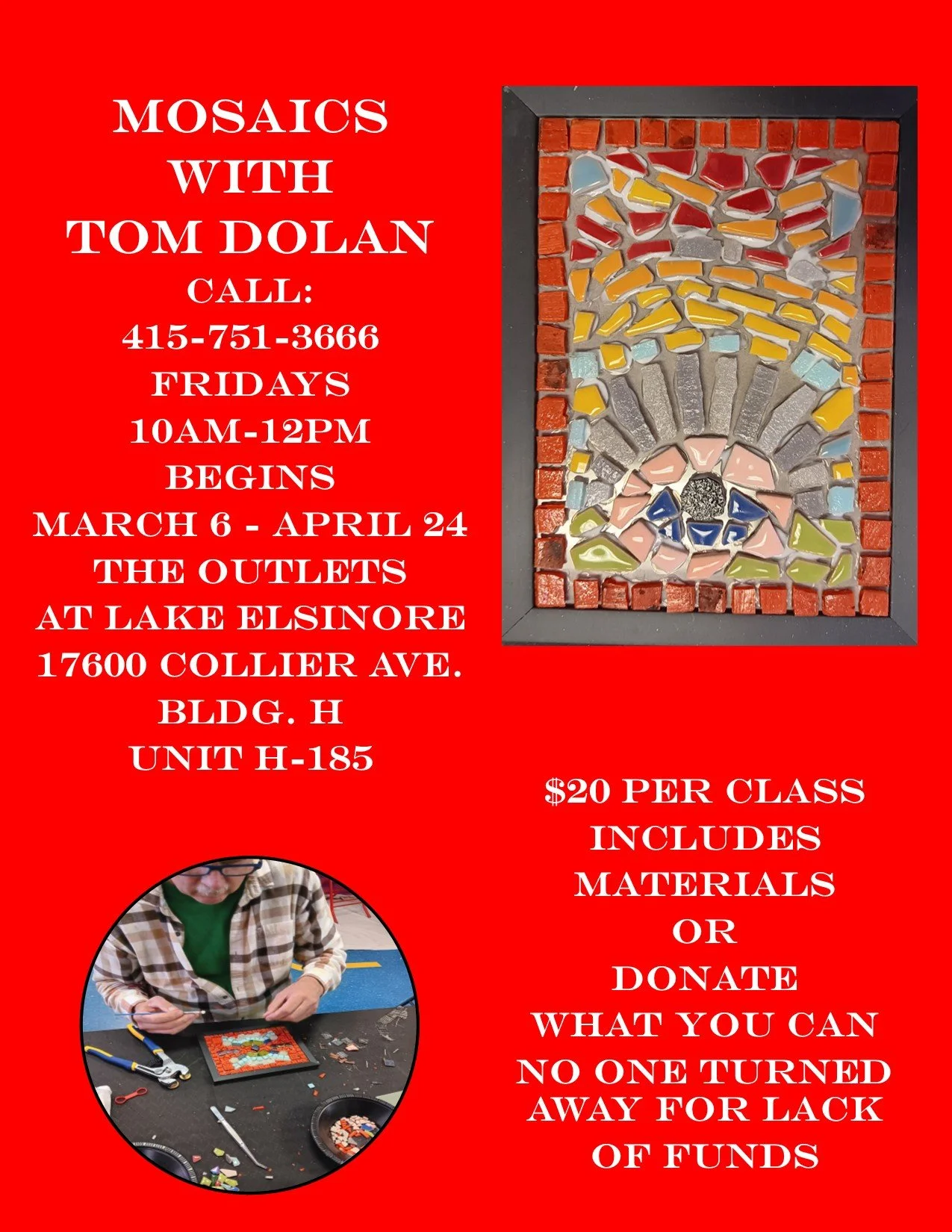 STUDIO 395 is excited to continue our weekly classes at The Outlets of Lake Elsinore, starting now! We are offering hands-on, creative experiences each week for artists of all ages and skill levels. Whether you’re returning or joining us for the first time, we invite you to explore, create, and grow with us. Below is a full list of the upcoming classes currently being offered.
